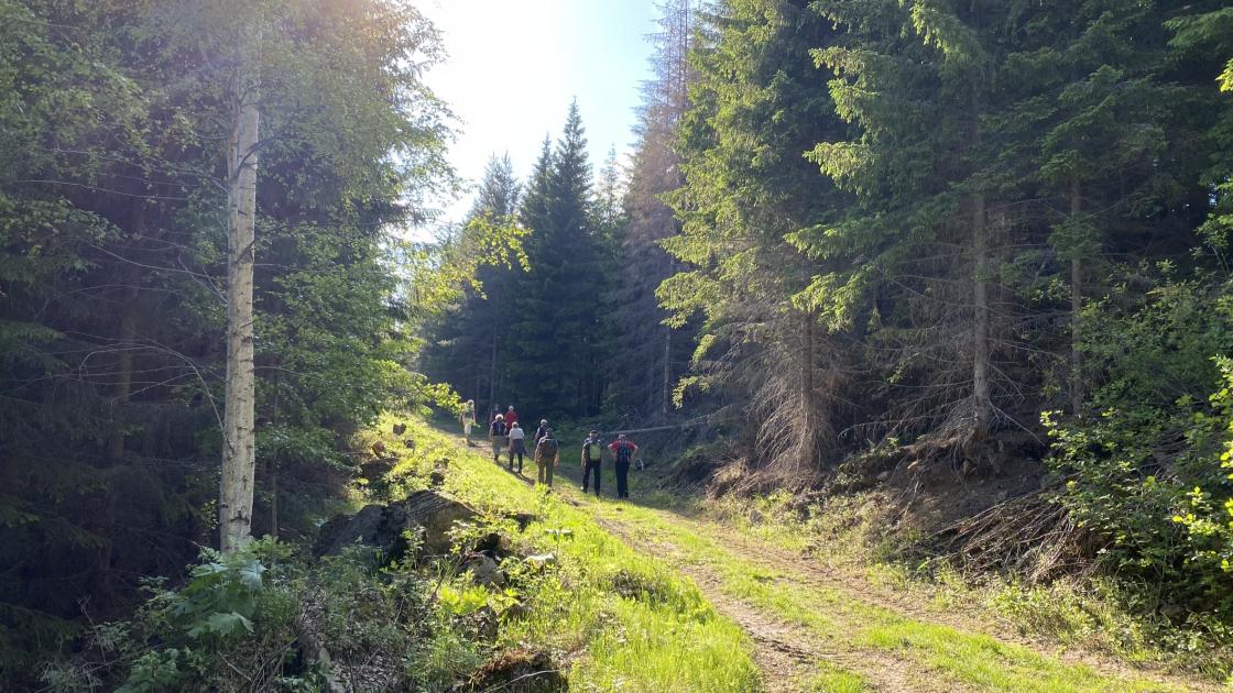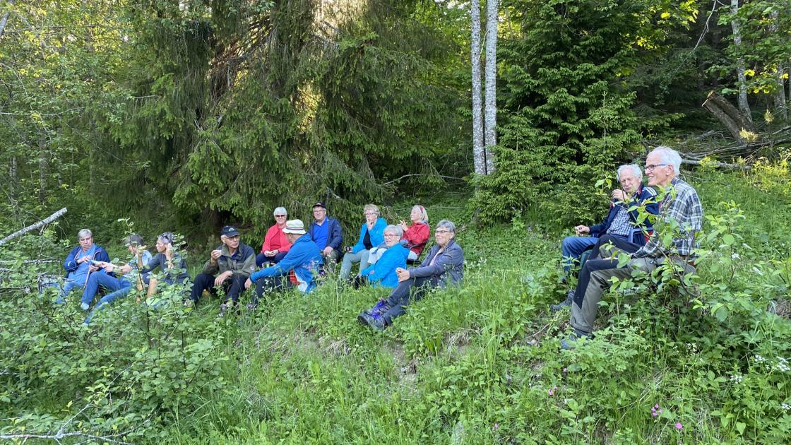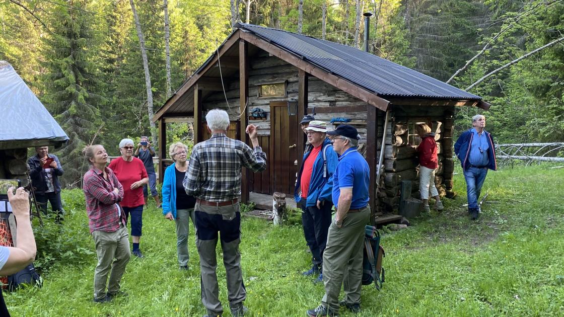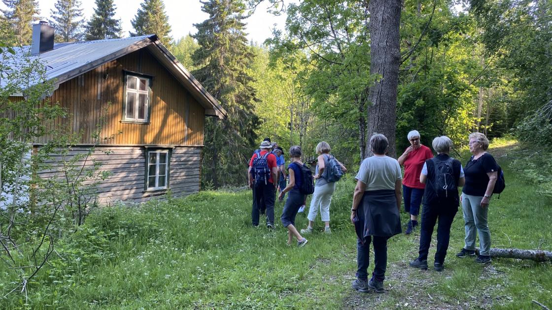 I strålende sommervær møttes 13 medlemmer og følge til bygdevandring langs deler av den gamle Rajeseterveien fra Helgebekk til Dalen.