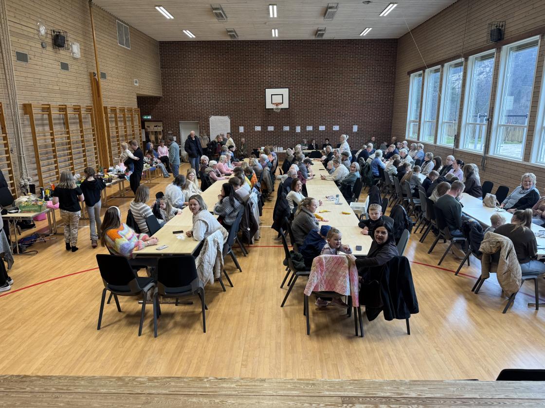 Over 150 møtte opp, og det ble en fantastisk basar. Folk er fantastisk gode til å kjøpe lodd. Dette kommer hele bygda tilgode i form av bidrag og aktiviteter.
