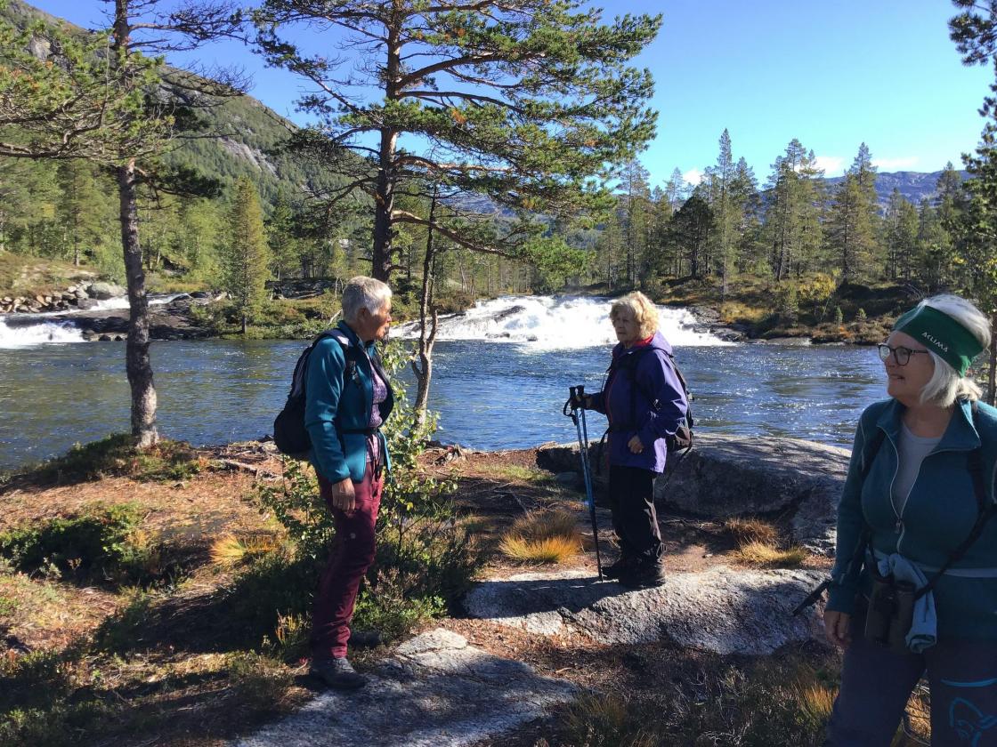 5 damer frå SBK hadde ein fin tur i eit nydeleg haustver på "Kristinstien" rundt Løyningsvatnet. Sola skein, og naturen viste seg fram i flotte haustfargar. Det var vått i terrenget, men det var lagt ut plankar til å gå på. Flott jobb av medlemene i turlaget, for det meste damene. Det var benkar til å sitte på fleire plassar, slik at ein kunne ta ein kvil å nyta naturen.
