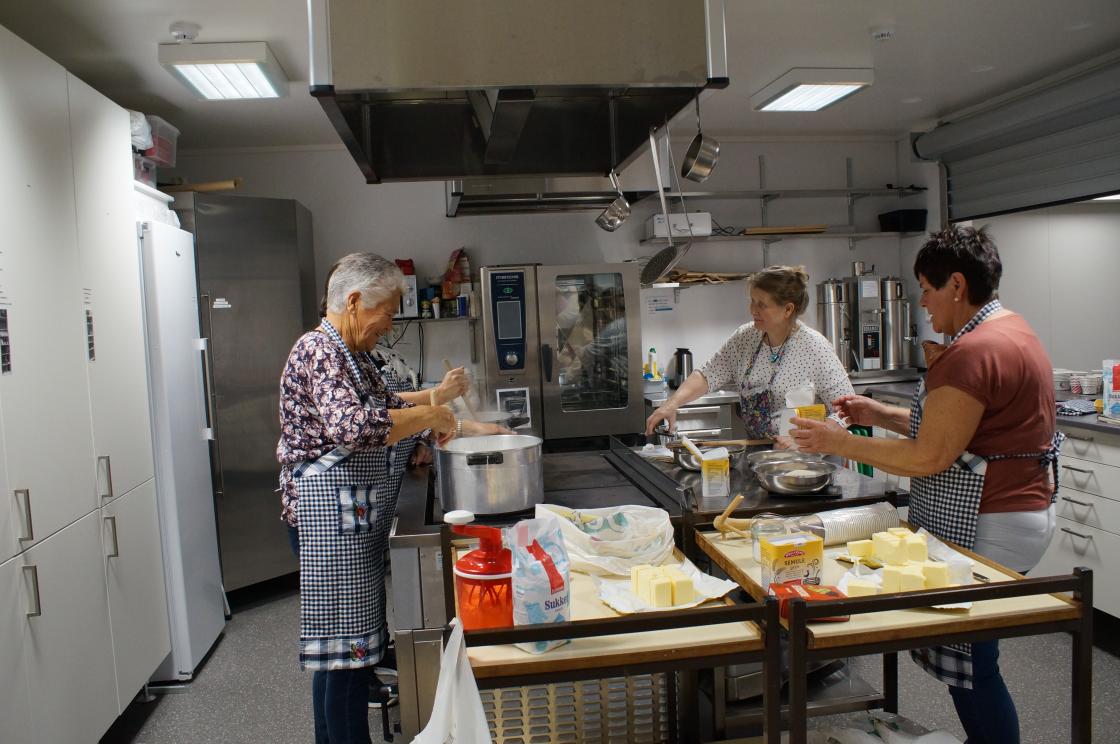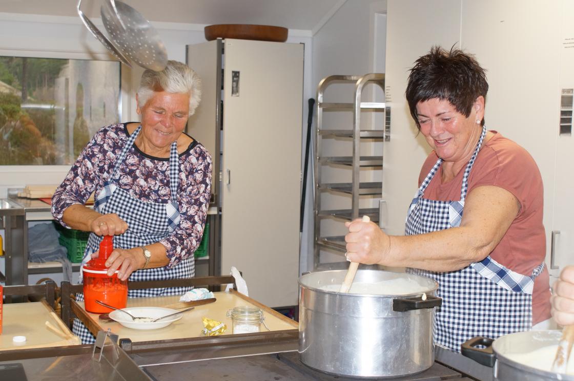 Me i Skare Bygdekvinnelag laga i dag veitlagraut som 4H skal selga på marknaden sin. Me var 5 medlemmar som møtte opp for grautakoking. Me kokte av 12 liter heilmelk.