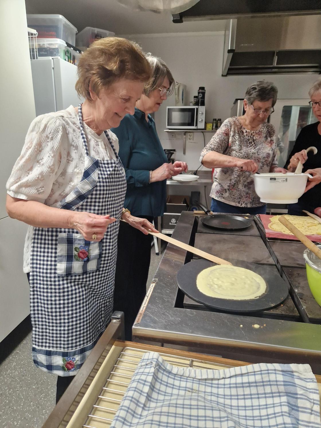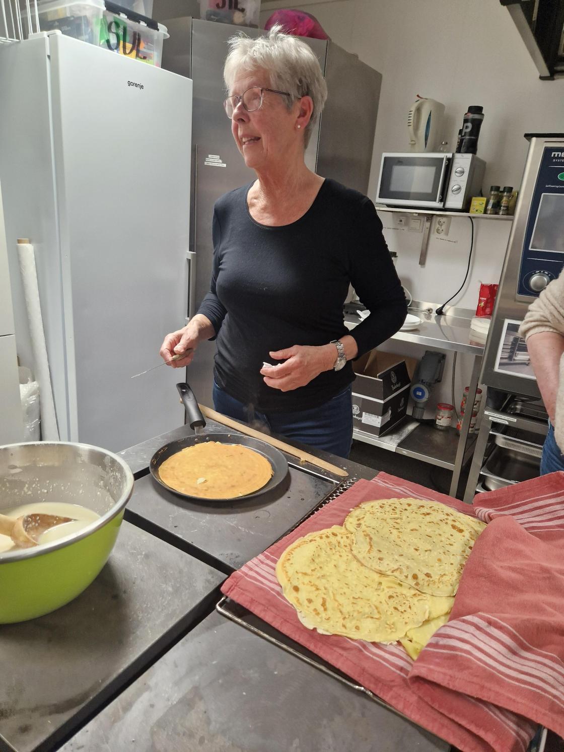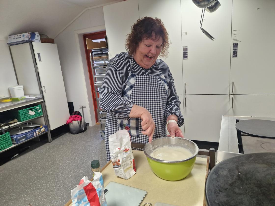 Medlemsmøte til Skare Bygdekvinnelag var denne gang et arbeidsmøte. Vi laga mjølkekaker. Gunvor ønsket velkommen til 16 medlemmer. Noen startet med å dekke bord, pyntet med påskeservietter, gule tulipaner og påskeliljer som ble loddet ut etterpå. Andre startet med å lage røra til mjølkekaker, praten gikk livlig om bruk av oppskrifter og ikke bruk av oppskrifter. Uansett så ble det nydelige, tynne og flotte mjølkekaker. Alle fikk være med å steike og øvelse gjør mester.
