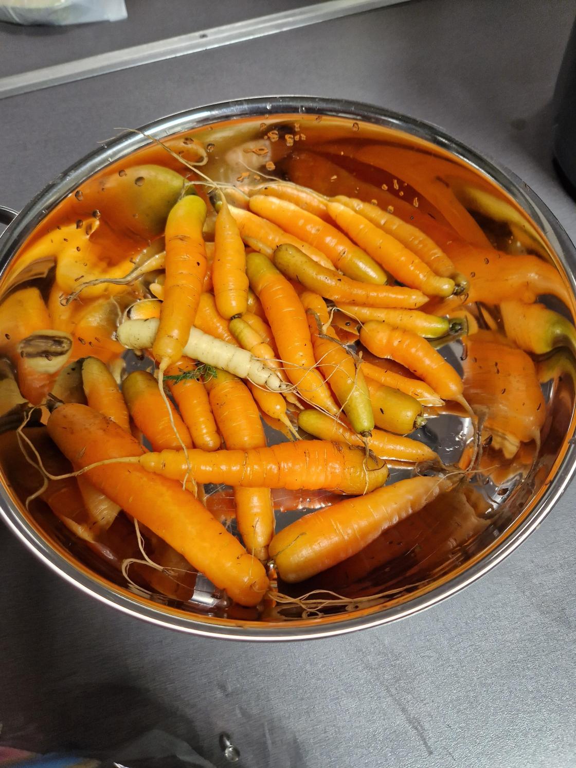 Tilbake på skulen nærma prosjektet seg slutten, og gulrøter, poteter og løk vart hausta.