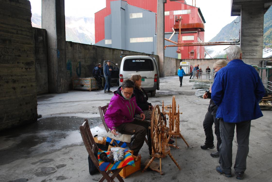 3 "spinnedamer" var der også med rokkane sine og dei spant fint garn. Kjekt for publikum å få se rokkane i bruk..