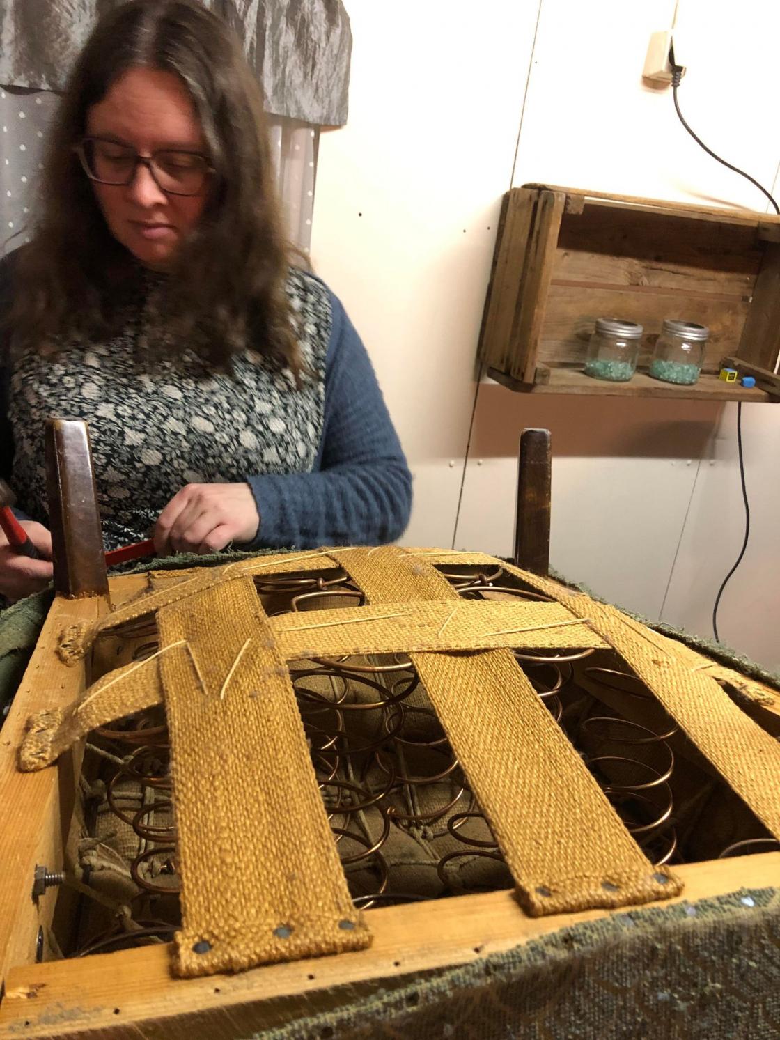 Skatval bygdekvinnelag arrangerer i disse dager kurs i møbeltapetesering. Med kyndig veiledning fra innleid "Møbeldoktor" fra Forradalen, Trond Thomsen, har de ti kursdeltagerne jobba med egne opptrekningsobjekter over to kvelder i februar.
