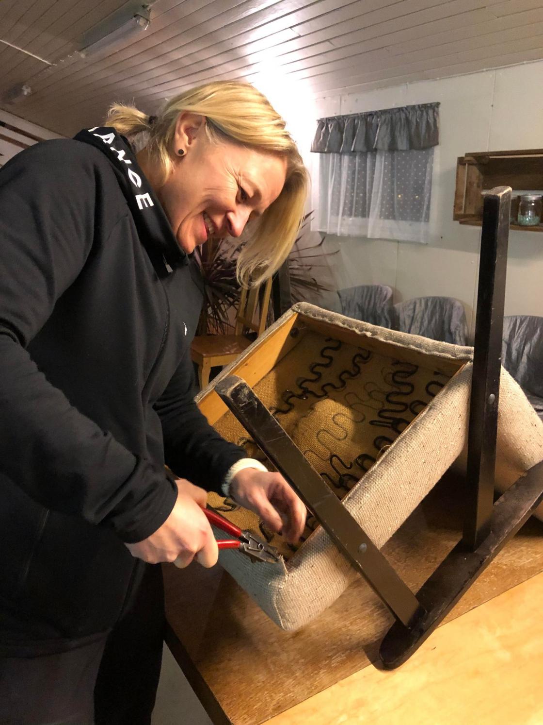 Polstre og trekke om. Hjemmelekse: Polstre og trekke om hvis du har et krevende prosjekt eller flere stoler.