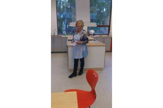 Det første kurset ble holdt på skolekjøkkenet på Hornnes skole. Her møttes 7 barn og 5 voksne klare til å lage mat sammen. Vi ble kurset av Anne Berit Mathisen. Det ble skrellet og kuttet. Vi lagde blomkålsuppe til forett, ovnsbakte grønnsaker og laksekarbonader til hovedrett. Vi stekte også sveler til dessert.