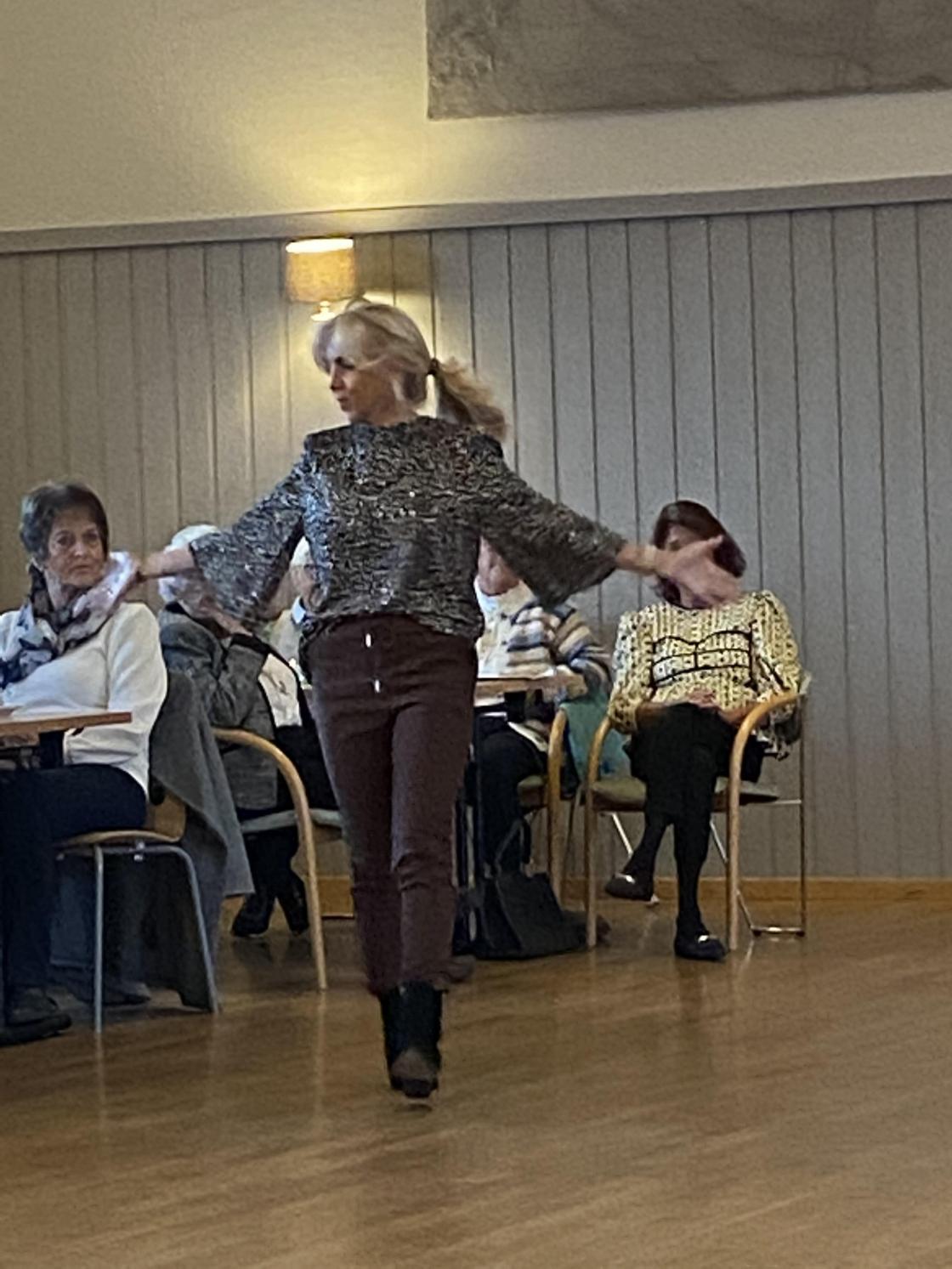 Det var mange blide damer som hadde tatt turen til Folkvang denne kvelden for å bli inspirert fra Linnea Shop fra Råde. Dem hadde med seg flotte modeller som viste oss høstmote og hvordan ting kan styles opp og ned.