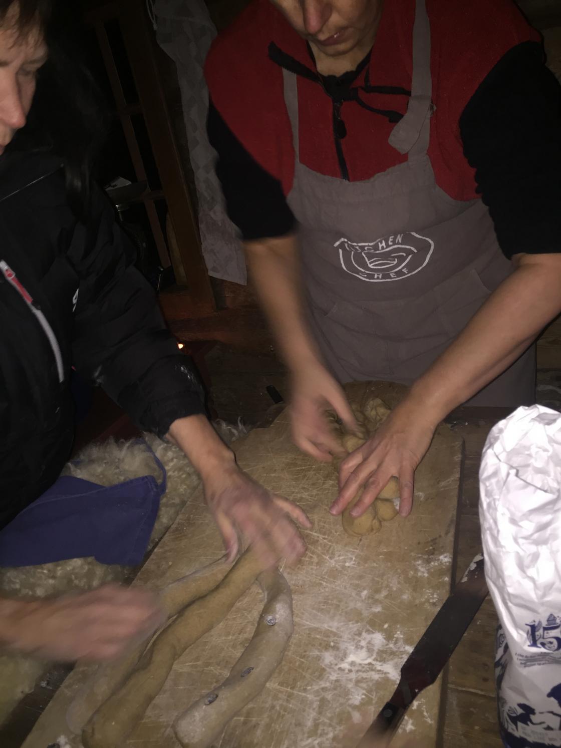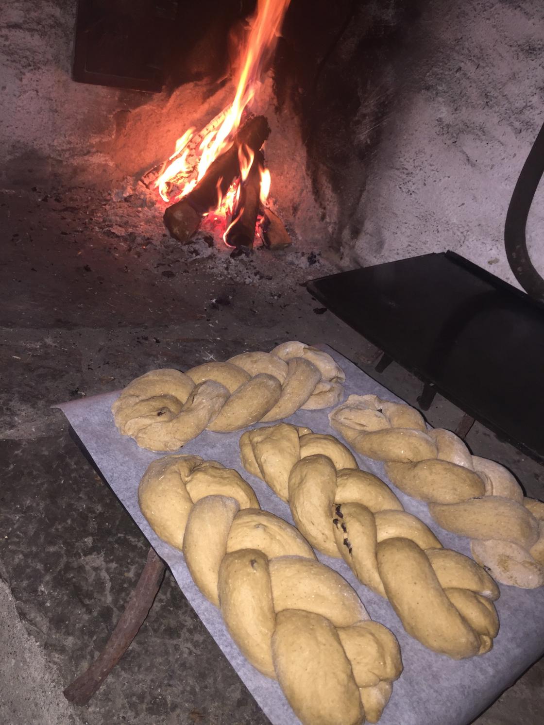 Inne i størhuset hadde Inger Karin varmet opp bakerovnen. Alle fikk prøve seg på å bake vørterbrød, julebrød og brød for så å steke dem i bakerovnen.
