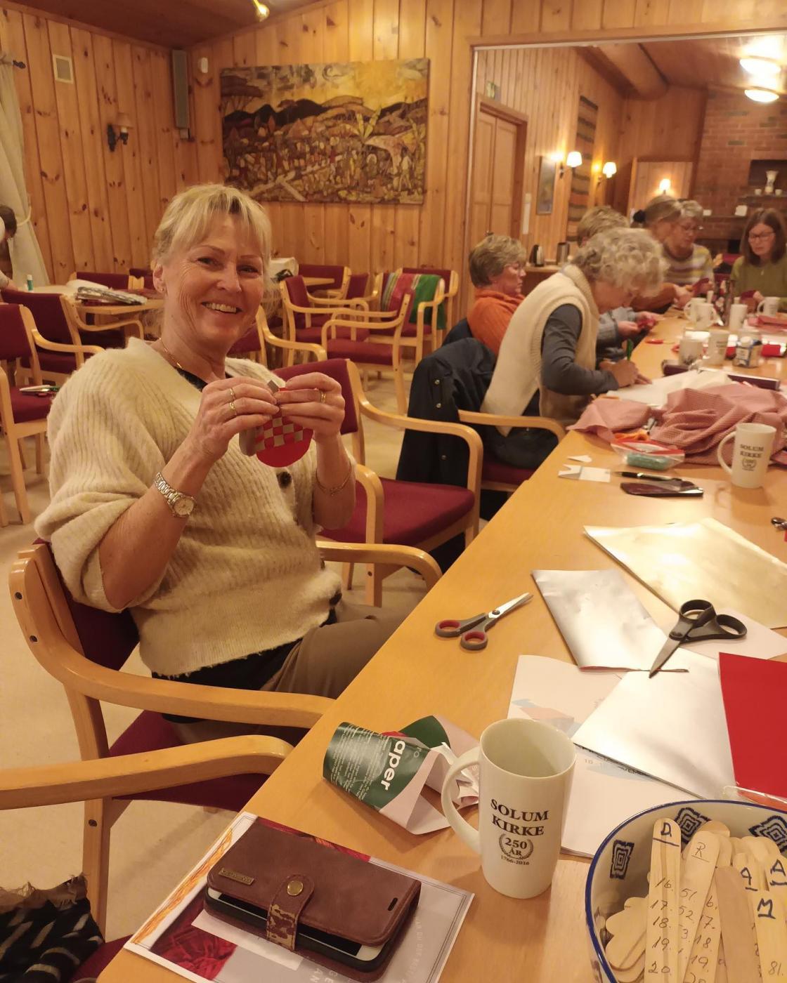 Denne mandagen hadde vi bygdekvinnelagsmøte med juleverksted. Det var god stemning med påfyll fra helges seminar og mange fine julehjerter ble laget.