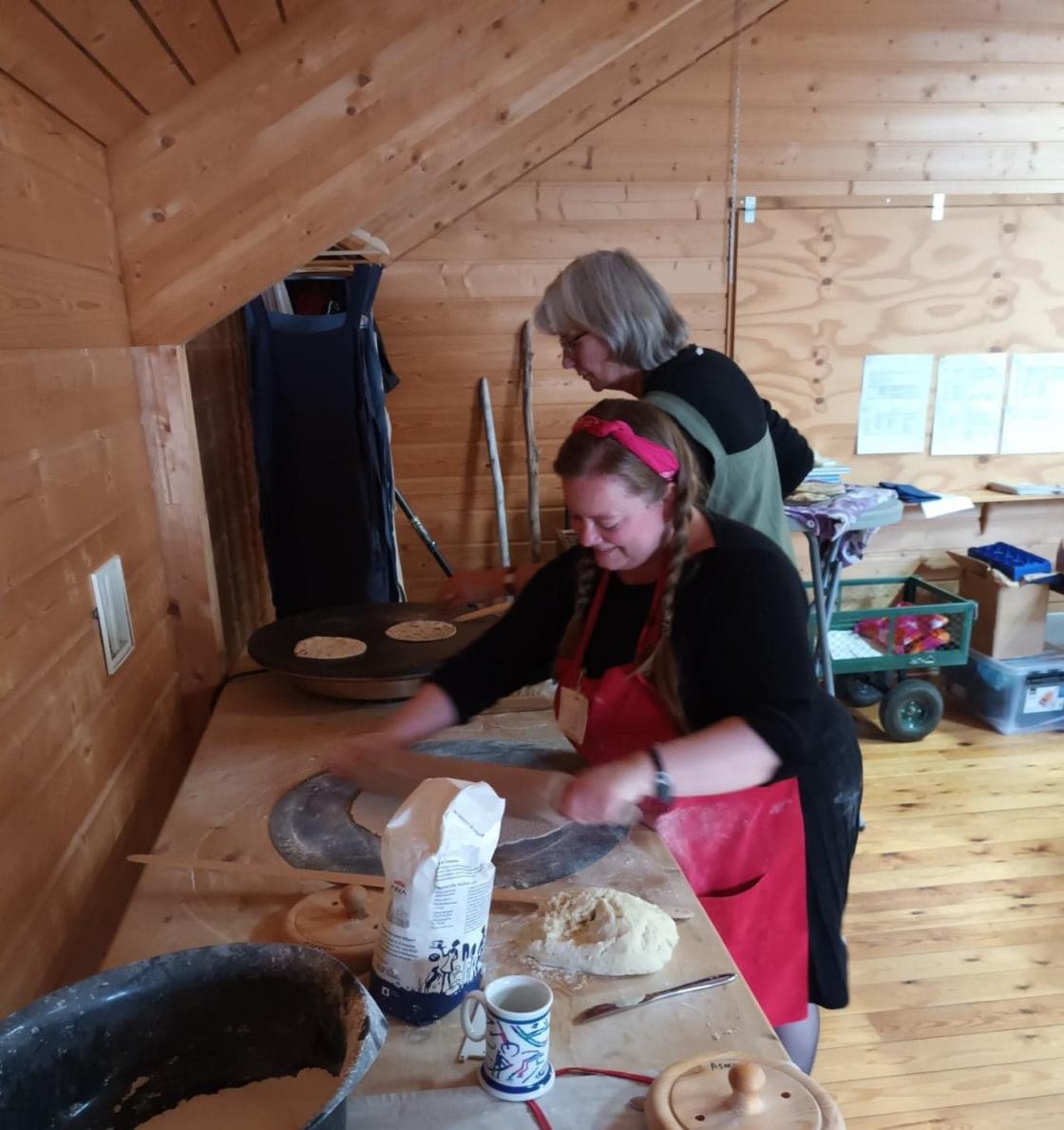 Det er kjempegøy å bake egne flatbrød og de smaker også utrolig godt. Har du lyst til å lære denne gamle bakstetradisjonen så møt på kurs, du er hjertelig velkommen.