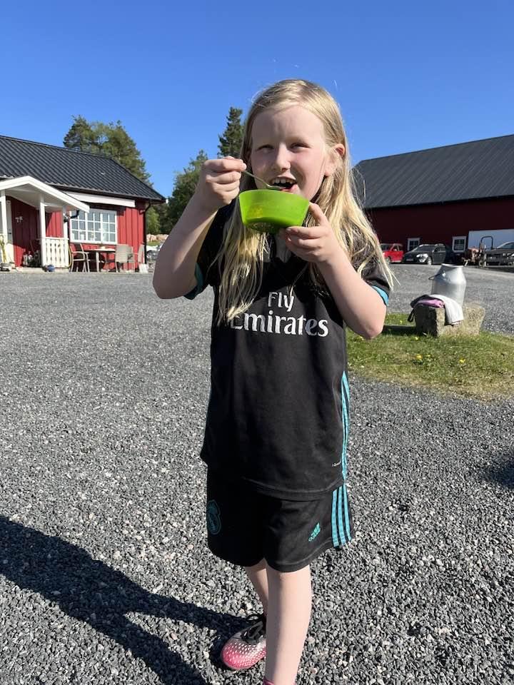 Den andre kurskvelden lagde vi neslesuppe, barna hadde plukket nesle og tatt det med seg. Ingunn fortalte også litt om nesleplanta og om småkryp som trives på den. Hun hadde tatt med seg en liten duk, denne er laget av neslefiber, det var det ingen av barna som klarte å gjette, moro og overraskende. Til neslesuppa ble det laget scones med bjørkesaft som eneste væske og med knust tørket brennesle. Noen av barna var skeptiske til å smake på maten, de trodde de kom til å brenne seg i munnen, mens andre var spente og gledet seg veldig. Det endte med at alle smakte, og veldig mage av barna likte det kjempegodt og forsynte seg flere ganger. Det var ingen som brant seg, så vi konkluderte med at det var helt trygt å spise behandlet neste.