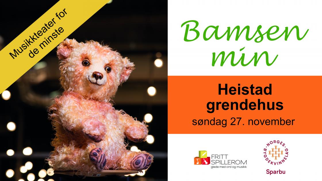 Endelig kommer musikkteateret Bamsen min til Heistad grendehus. Vi sees søndag 27. november.