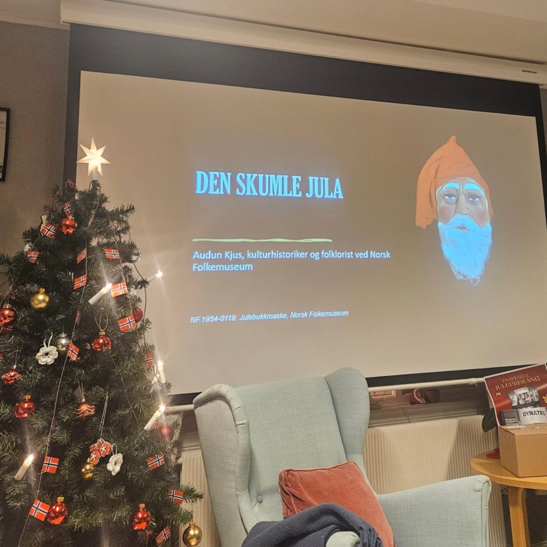 Onsdag 11 desember inviterte vi til adventsmøte og foredrag med Audun Kjuus fra Norsk Folkemueum