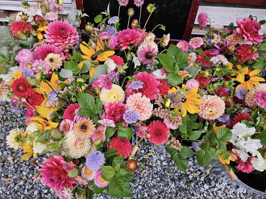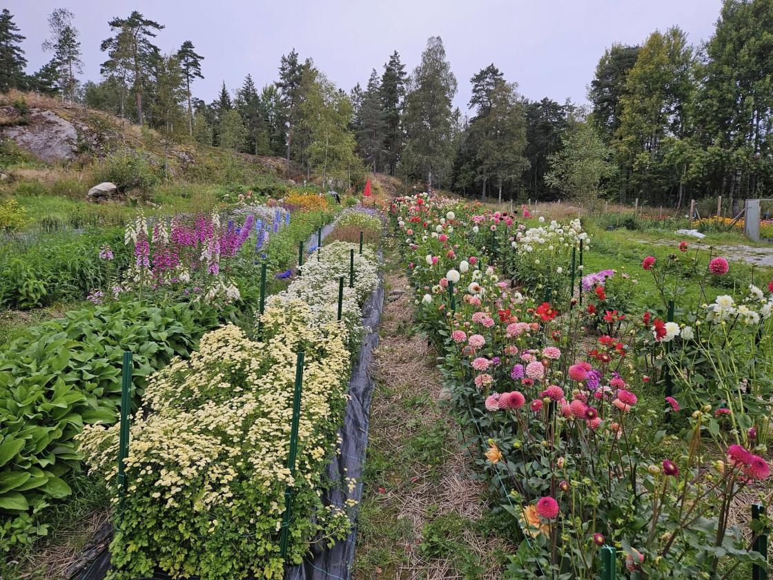 På augustmøte besøkte vi Blomsterkona og hennes blomsterland