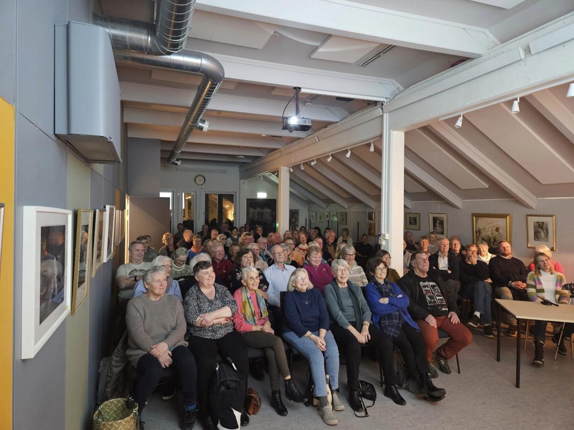 Spydebergstua var fullsatt da Magne Molle holdt foredrag om livet og menneskene i Mørkkroken fra 1950 - 2024
