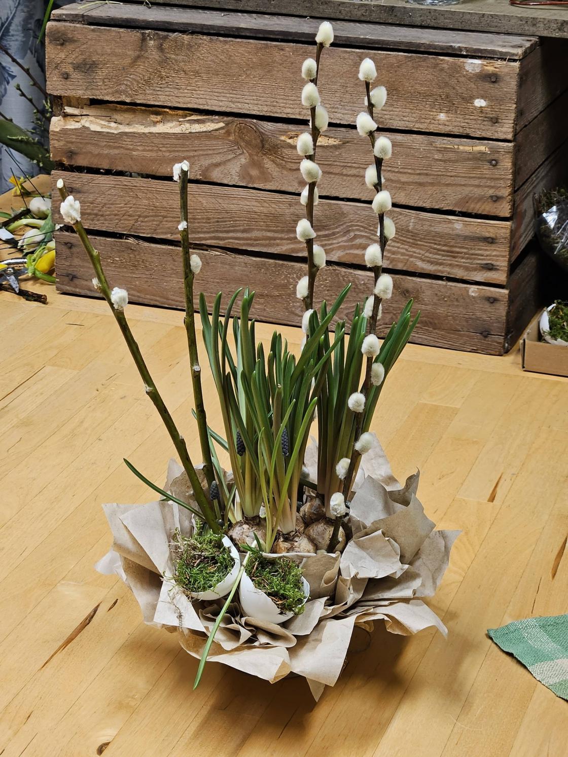 Krestine fra Essen blomster viste de 40 damene som kom hvordan man enkelt kan lage påskedekorasjoner av høy, eggeskall og avispapir. Det er kunn fantasien som stopper deg.![]()