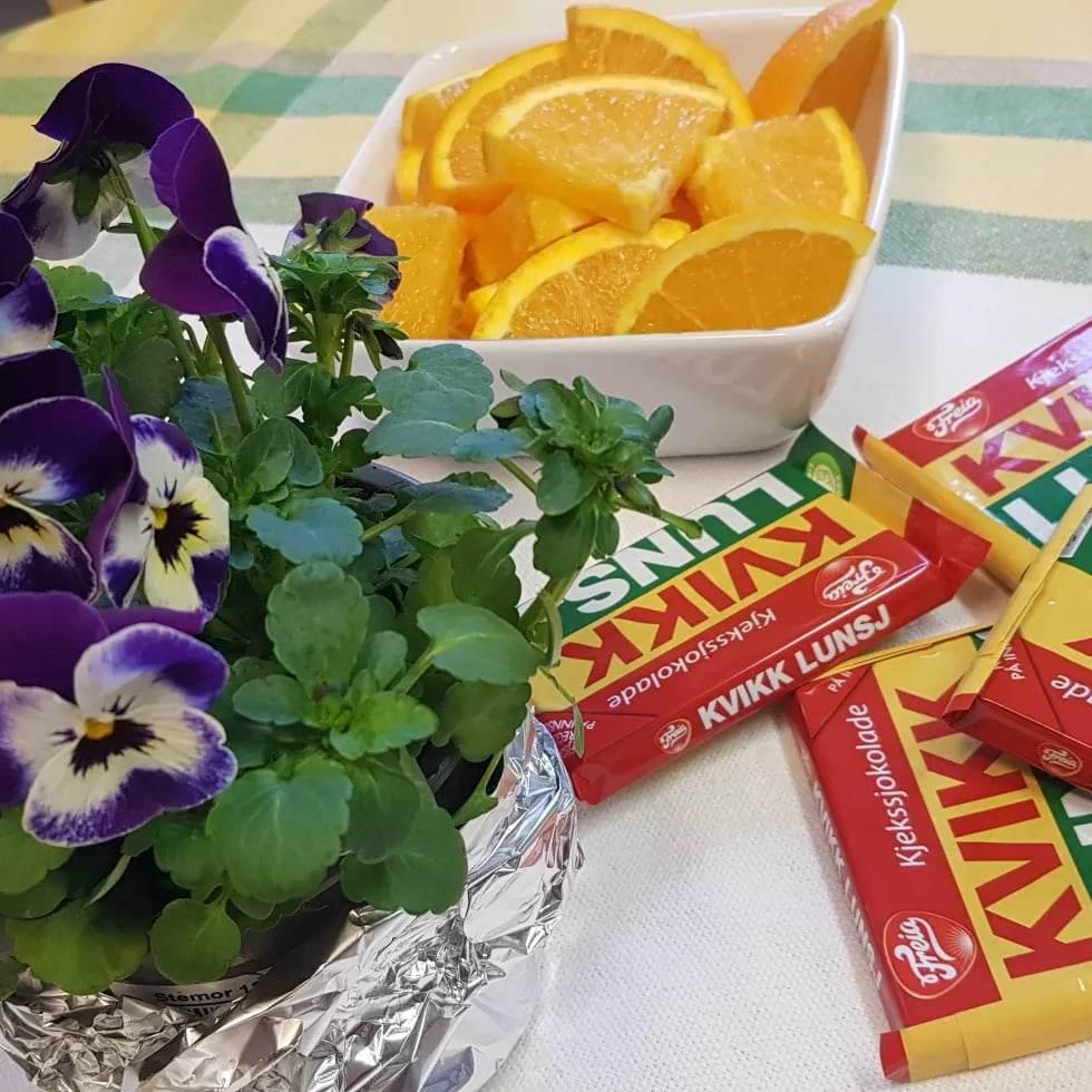 .Hva passa ikke bedre enn å servere turmat nr 1 pølse og lompe og til dessert var det kvikklunsj og appelsin.![]()