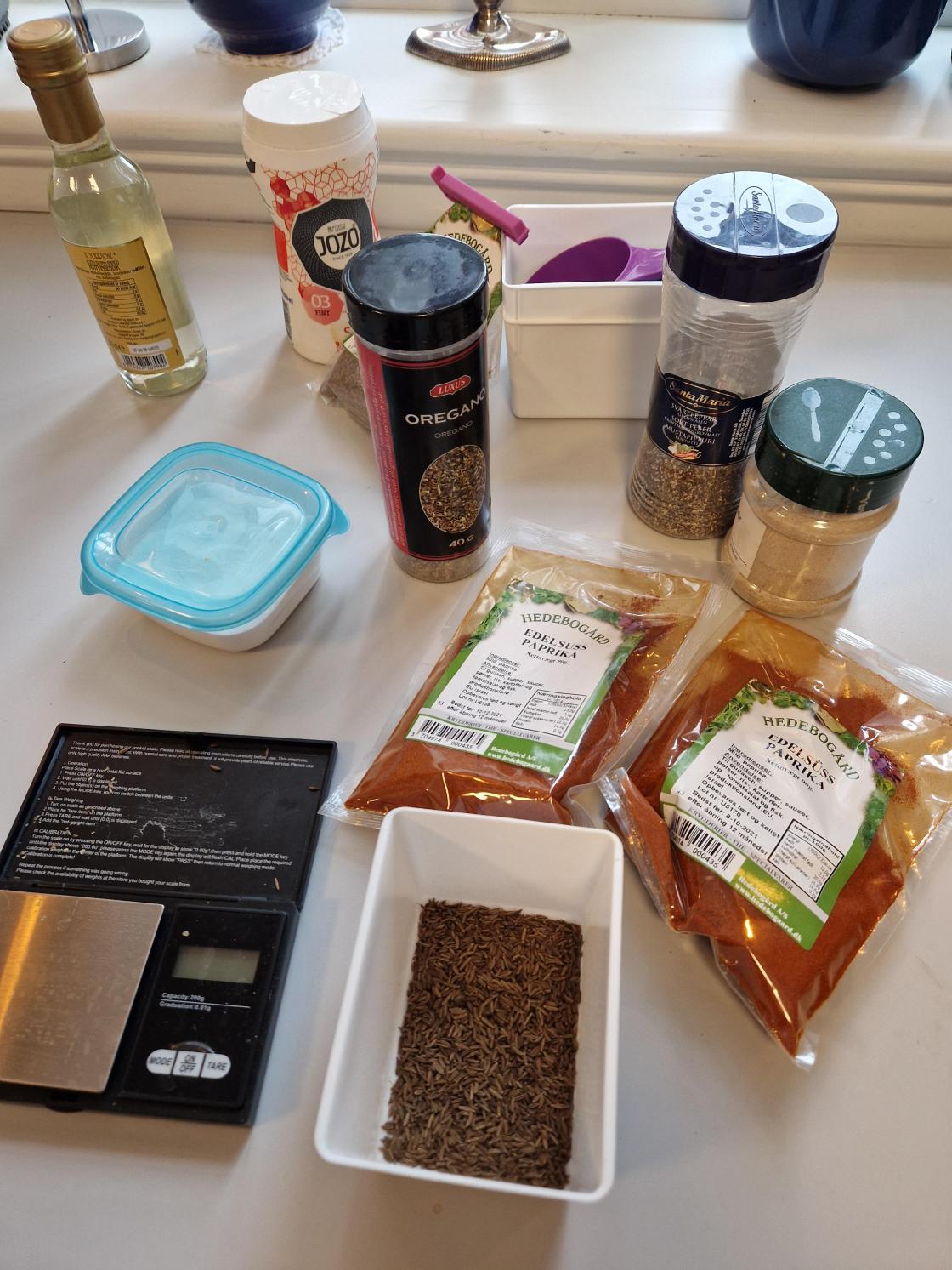 Etterpå lagde vi farse til Chorizo pølser, med mye godt krydder. Disse ble ikke kokt, og kan grilles eller stekes rå ved bruk. Chorizo pølsene blir visstnok best hvis de kan ligge i kjøleskapet til dagen etter, før de blir pakket og fryst eller stekt. Det beste er å vakumpakke pølsene før de blir fryst, for å unngå rim. De kan også henges til speking i en kjølig kjeller i ca. 2- 3 uker.