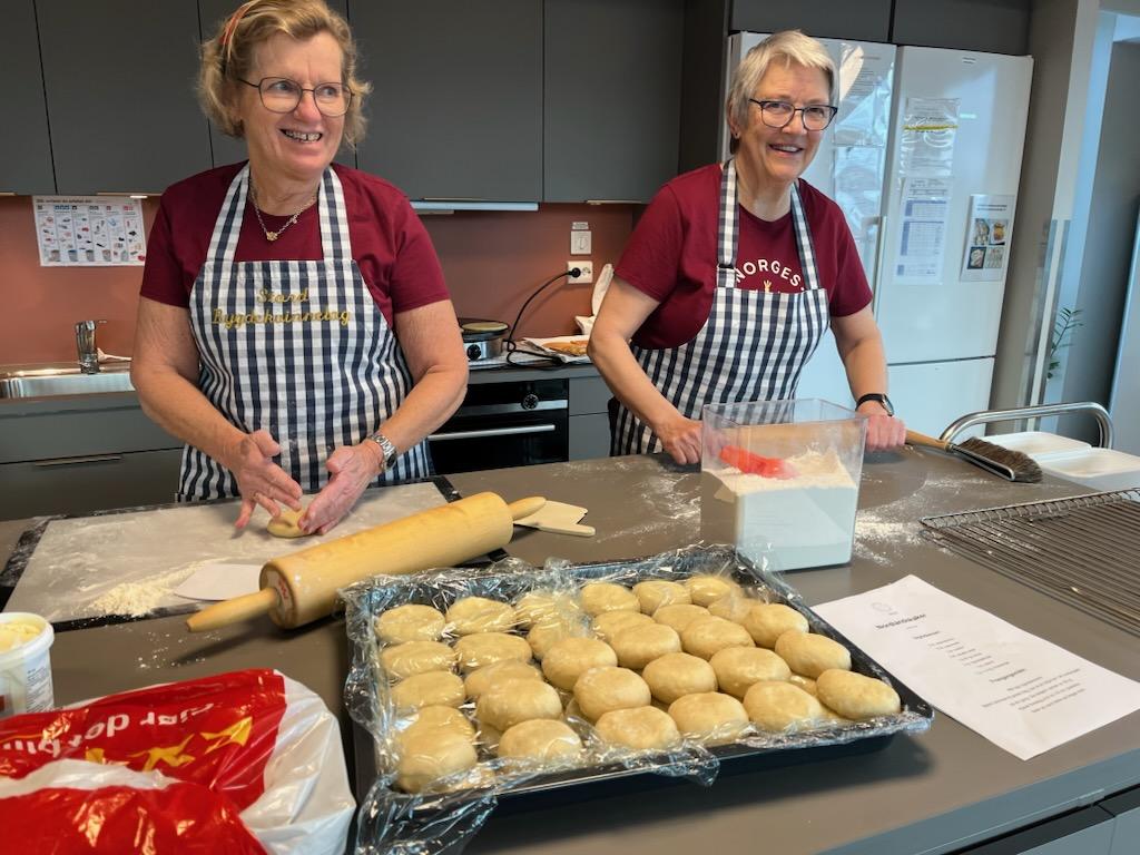 Vi tok med oss takker og deig til Sjukeheimen i år også.