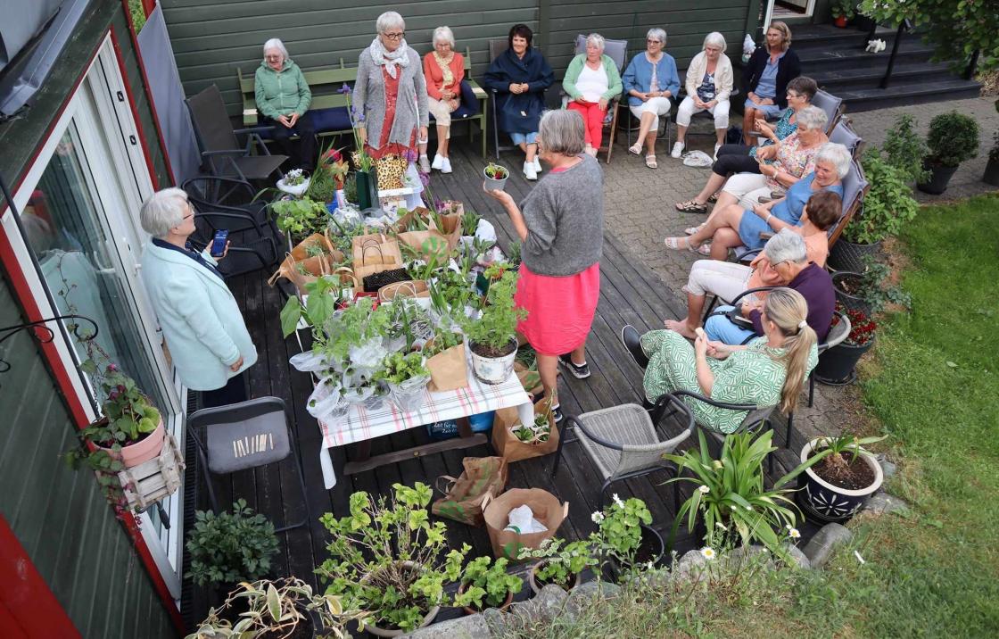 23 damer hadde med seg masse blomster som ble loddet ut.