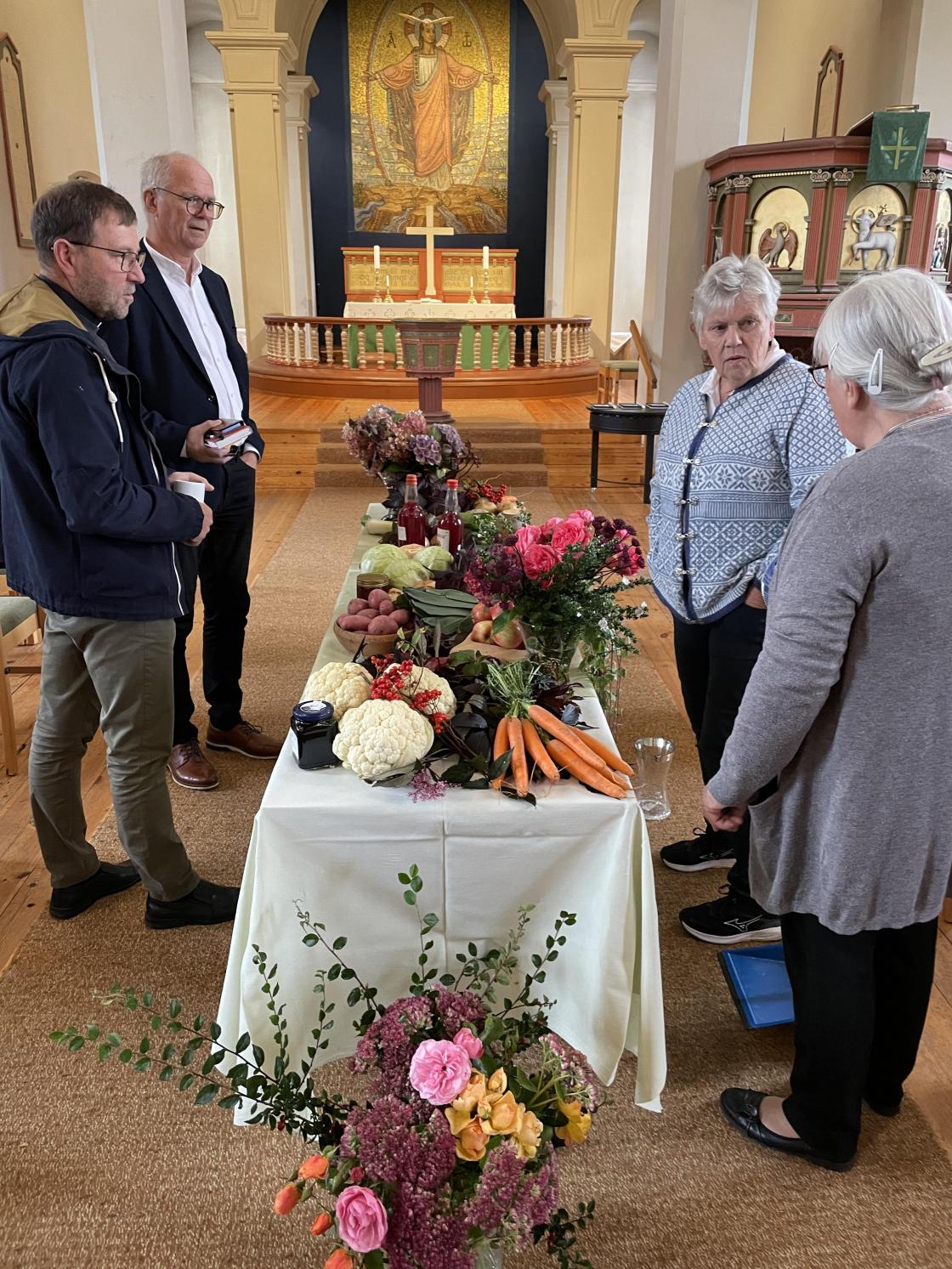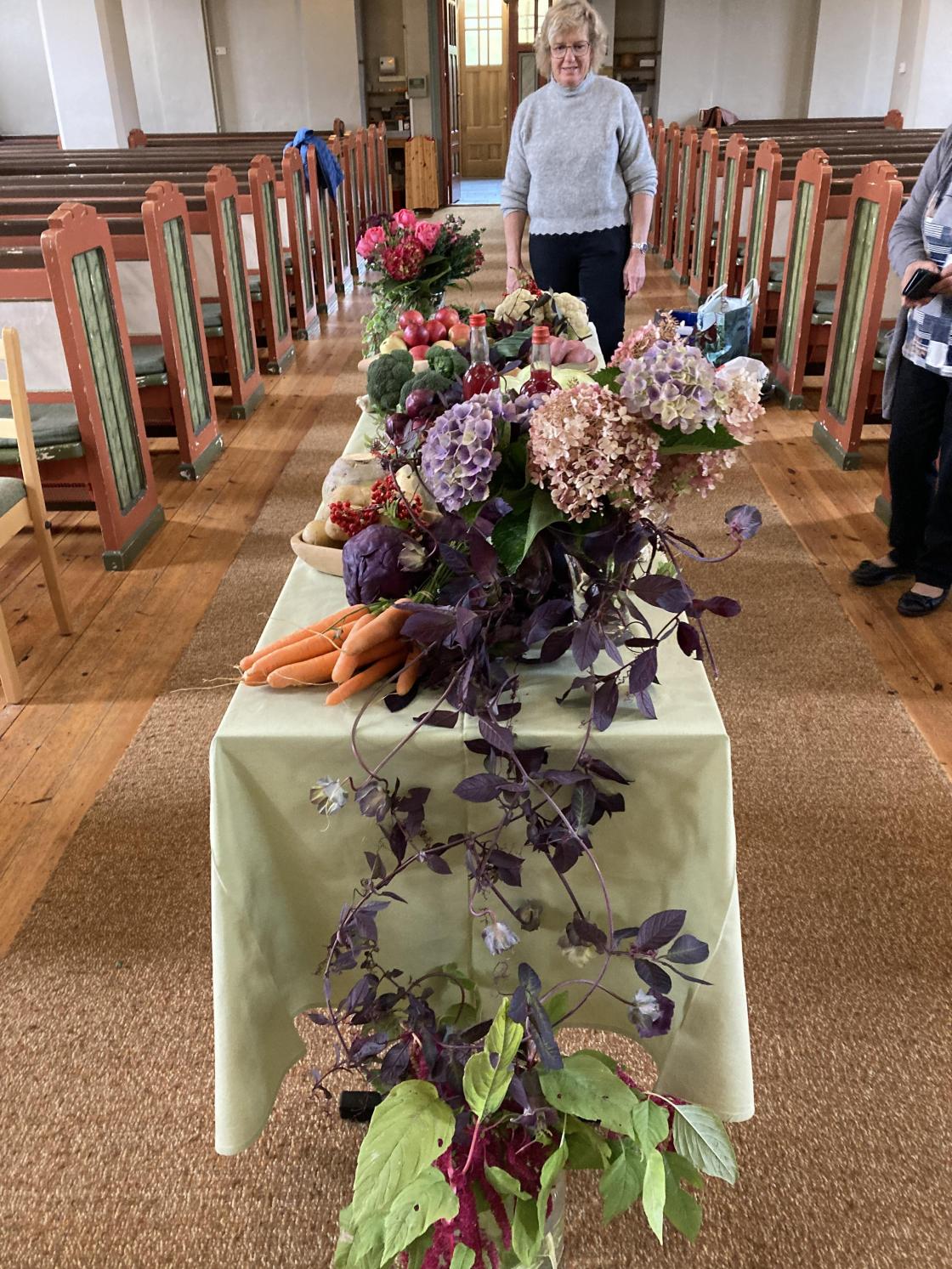 Stord Bygdekvinnelag pyntet kirken til høsttakkegudstjeneste.