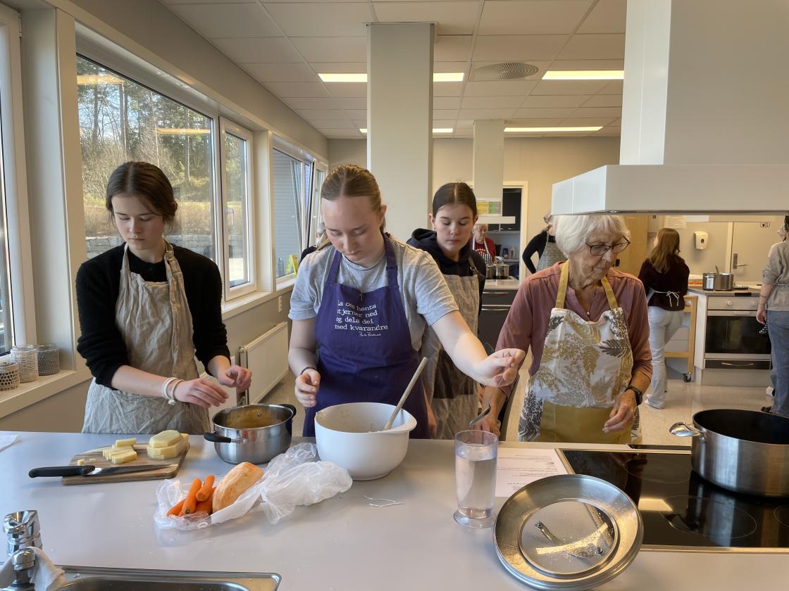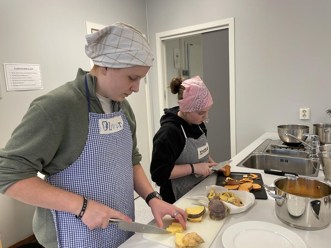 24 elever i valfaget Kulturarv fikk i løpet av to dager lært seg å lage enkel komlemiddag.