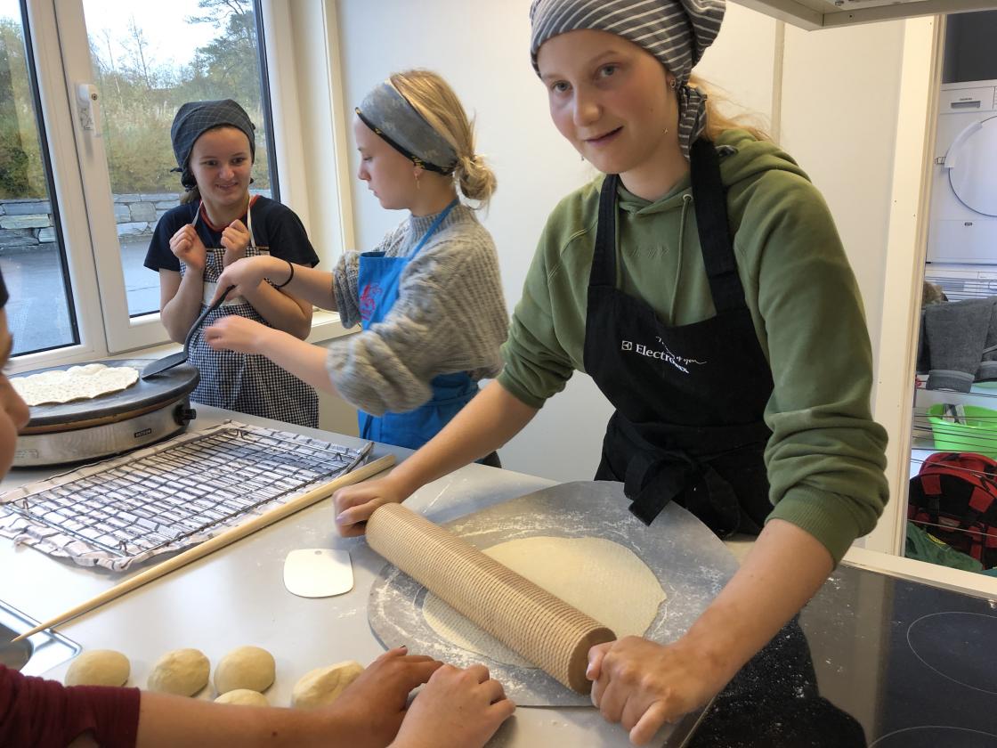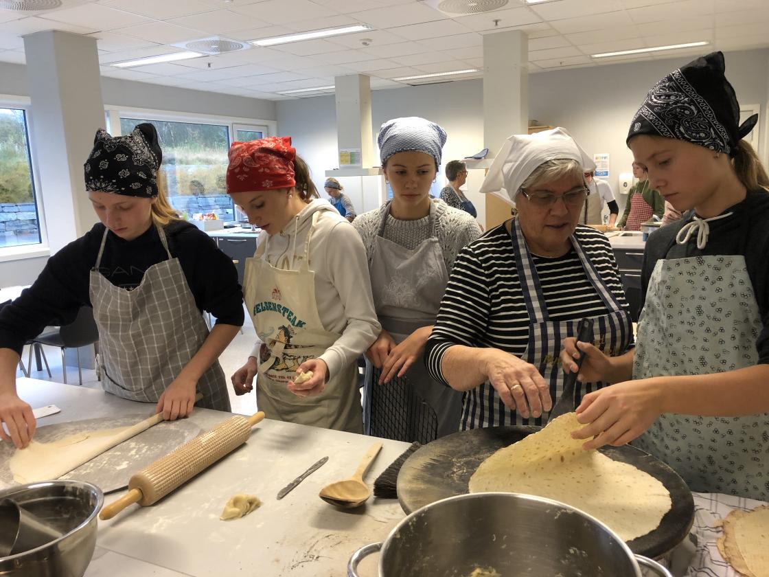 Kjevling og steking gikk som en lek. De var veldig flinke og positive. De fikk laget hardingkaker og nordlandslefser.
