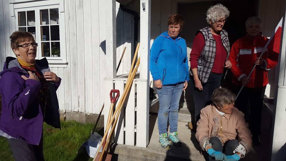 Det var luking, raking, spaing og trillebårkjøring, ispedd trivelige samtaler og lett stemning!