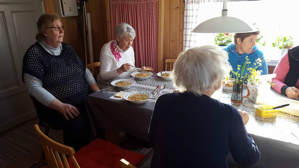 Etter ca ett par timer jobbing ute var det godt å komme inn i varmen. På kjøkkenet var det dekket klart til et deilig måltid hjemmelaga ertersuppe og brød.