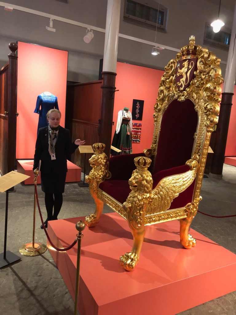Så dro vi til Dronning Sonjas kunststall hvor vi hadde omvisning der vi bl.a fikk se Dronning Maud kroningskappe fra 1906 og Kongens Buick Roadmastet A1 som ble brukt på Frigjøringsdagen i 1945.