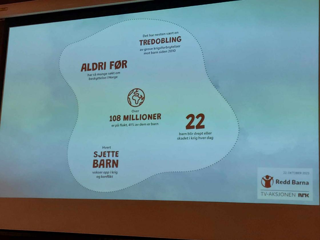 Turid Fjeld Olsen fra Redd barna holdt en veldig informativ, fin og veldig rørende presentasjon om hva pengene skal gå til, og det viktige jobben Redd Barna gjør for barn som ikke får leve i fred. I år går bidraget til Ukraina, Syria, Bangladesh, Sør-Sudan, Den Demokratiske Republikken Kongo og Norge.
