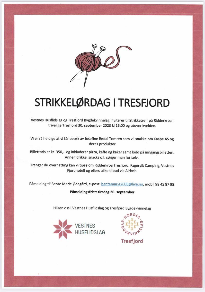 Tresfjord Bygdekvinnelag og Vestnes Husflidslag arrangerer STRIKKELØRDAG