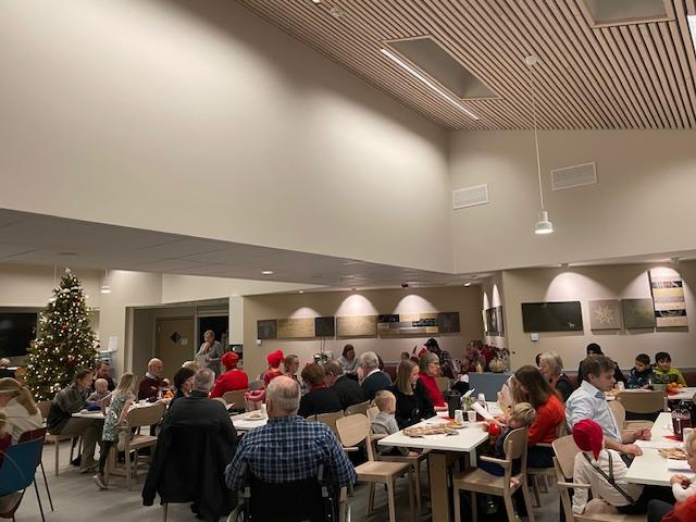 Me gjentok suksessen frå i fjor å arrangerte jolatrefest for store og små, i lag med Ulvik Sokn. Me var på heldige å væra på omsorgstunet, der dei har ei flott kantina me kunne bruka. Det som er fint med festen er at alle aldrar møtest, og bebuarane på omsorgstunet er med på jolatrefesten.