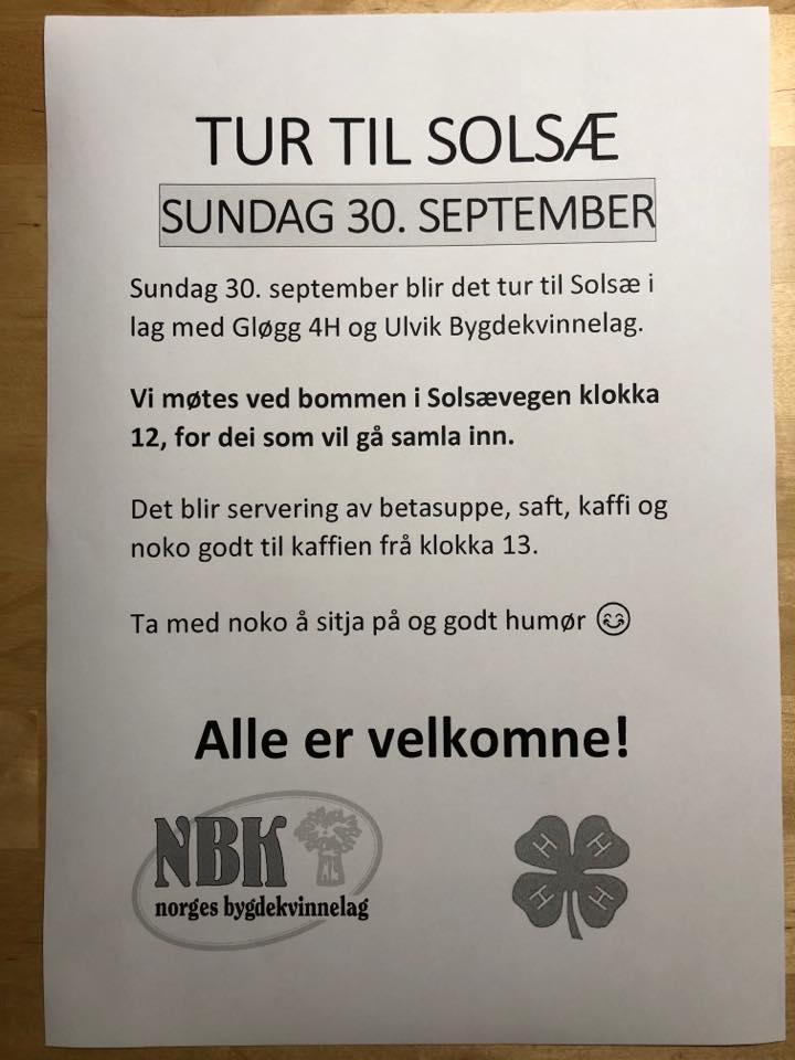 Sundag 30. september blir det tur til Solsæ i lag med Gløgg 4H og Ulvik Bygdekvinnelag.