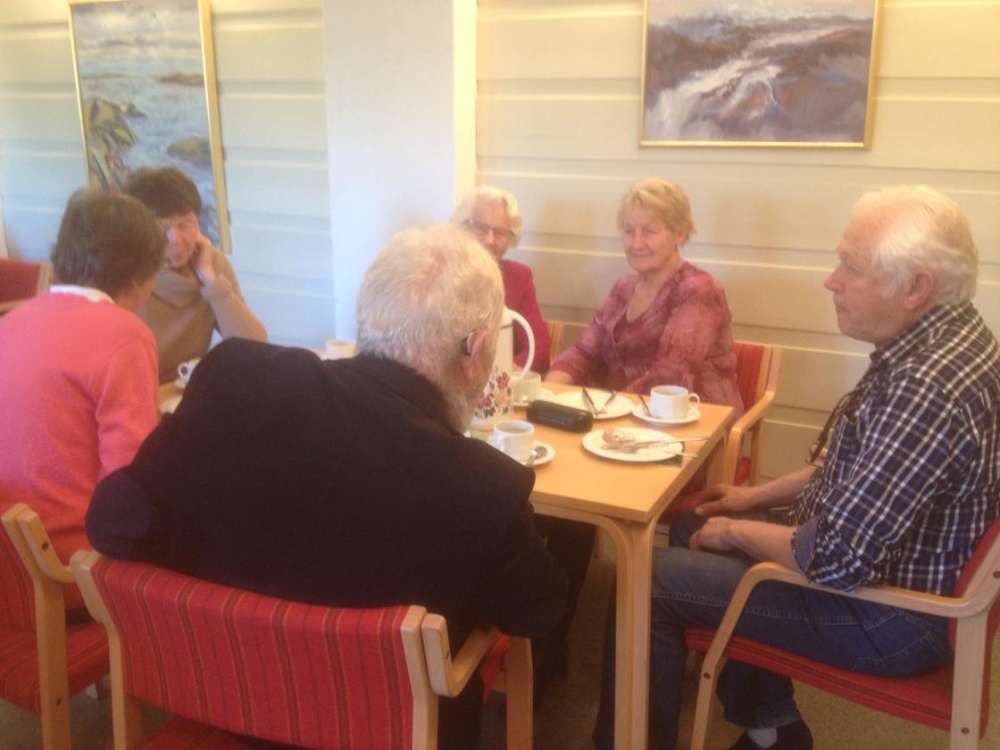 Vi startet med deilig lunsjbuffe som vi forsynte oss villig av. Nydelig dekket og gode smaker. Kaffe og te som tilbehør - og så kom kakene! Ostekaker denne dagen.