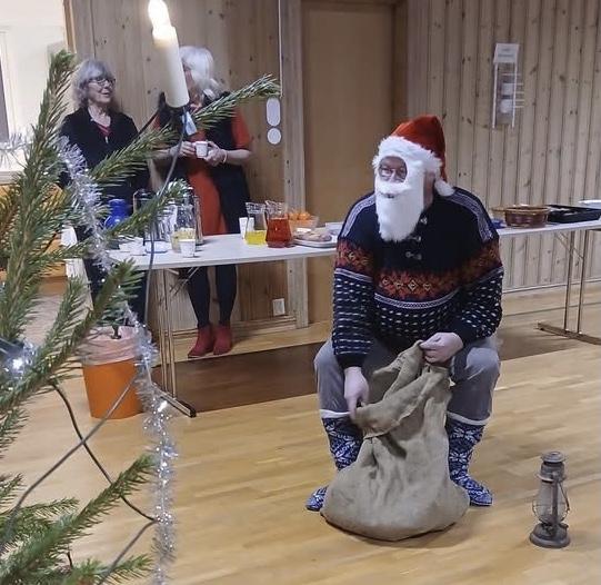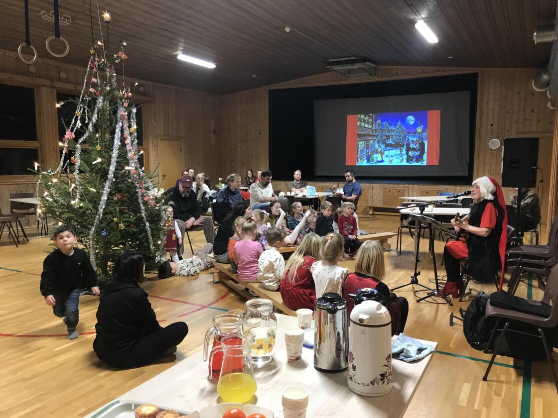 I den kaldeste dagen hittil i vinter med iskald nordavind møtte 55 barn og voksne opp og hadde et par hyggelige timer med servering av kaker, kaffe/saft og clementiner. Det var underholdning med julehistorier og julesanger av Inger fra Horten, gang rundt juletreet - og selvfølgelig kom vår trofaste nisse med godteposer til barna (heldigvis var han tilbake i fin form etter sykdom i fjor).