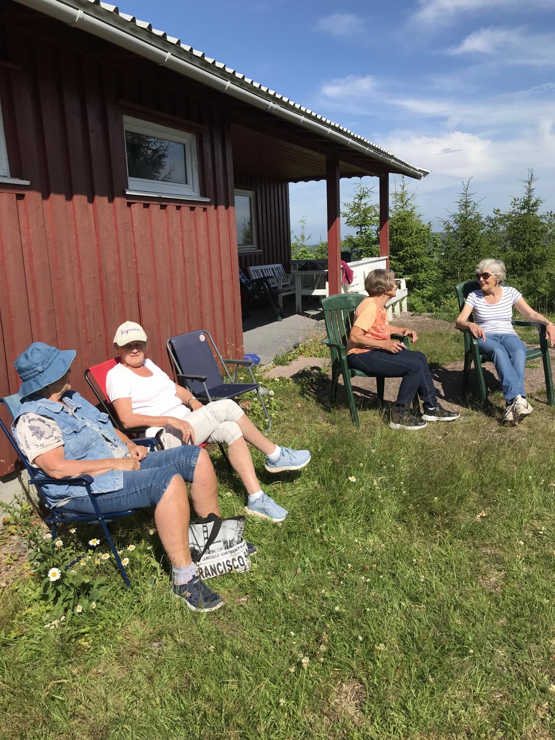 Vi inviterte til sommertreff med følge. 14 stk og en hund møtte opp medbrakt både kaffe, niste og forfriskninger. Det ble en deilig ettermiddag på Krokeborgåsen.