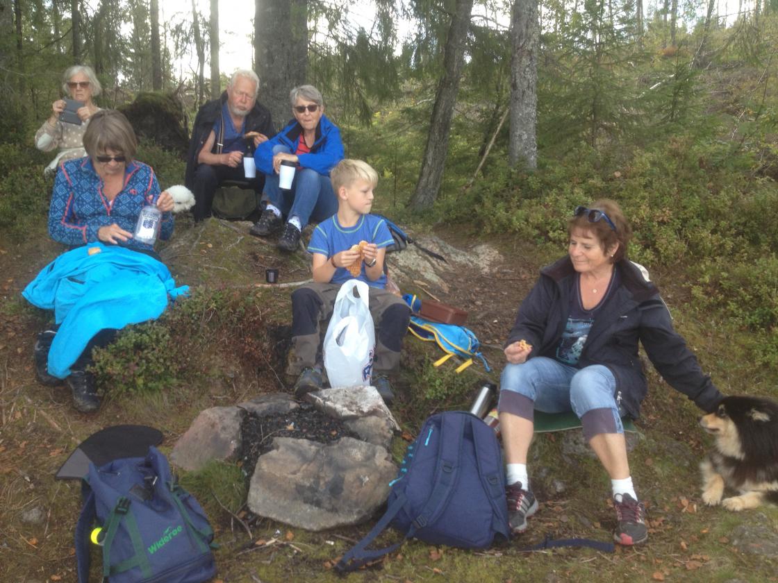 7 personer (inkl Torben 10 år) og 2 hunder var med på tur i dag 03.09.2017.