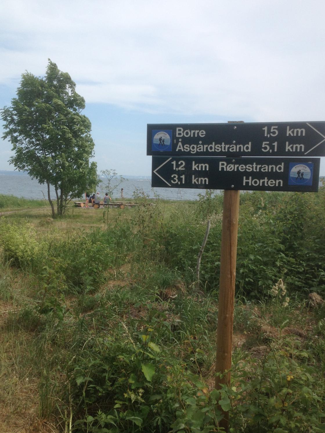 Det blåste friskt på Stranda i dag, noe som overrasket oss som kom fra innlandet. Det ble en fin tur fram og tilbake. Mange andre var også på stien, både gående, syklende og løpende, så vi måtte være litt obs!