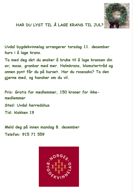 Medlemskveld torsdag 11.12 klokka 19:00 på Uvdal herredshus