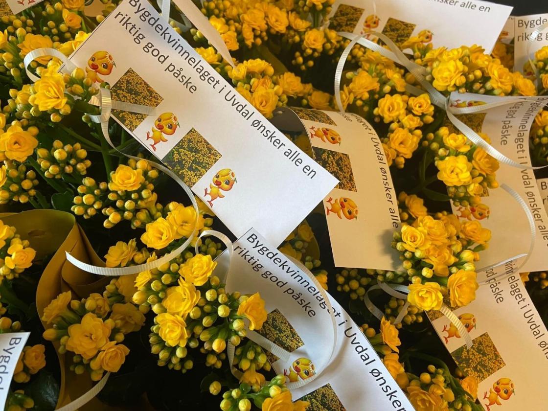 Vi håper at blomstene får stå på bordene gjennom hele påsken og spre glede med sin gule fine farge.