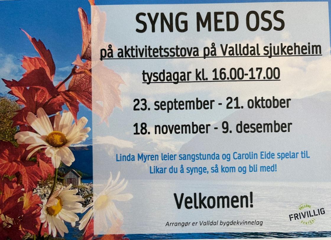 Vi håper at mange på Heimen og også frå bygda elles vil kome og synge saman med oss.