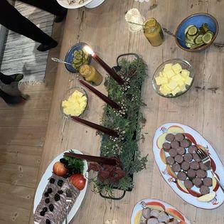I tradisjon tro på adventsmøte ble det servert sylte, julepølse og lefse med tilbehør, samt kaffe og kaker. Gerd Børresen hadde med hjemmebrygget juleøl som smakte fortreffelig.