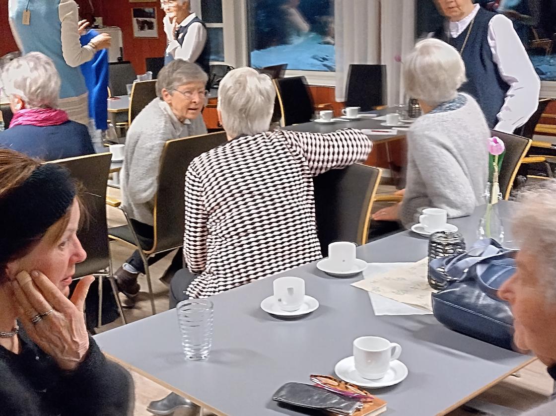 Vi møttes på Øverbykafeen og leder Gøran Bertoia ønsket velkommen. Møtet ble innledet med sang « Sov du lille spire».