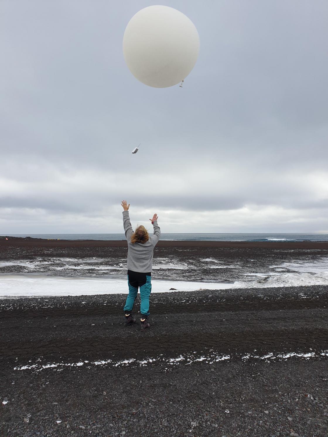 11 grader var den varmeste dagen under oppholdet. Meteorologisk stasjon sendte opp værballonger flere ganger om dagen, noe Linda også fikk være med på.