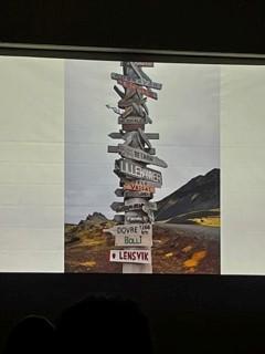 Linda fortalte at de ansatte fikk lage og sette opp skilt på en veiviserstolpe fra sine respektive hjemkommuner. Det gjorde også Linda og hun tillot seg å lage skilt fra «sin hjemkommune» med navnet Vassås. I tillegg så vi et skilt med Hof laget av en tidligere ansatt.