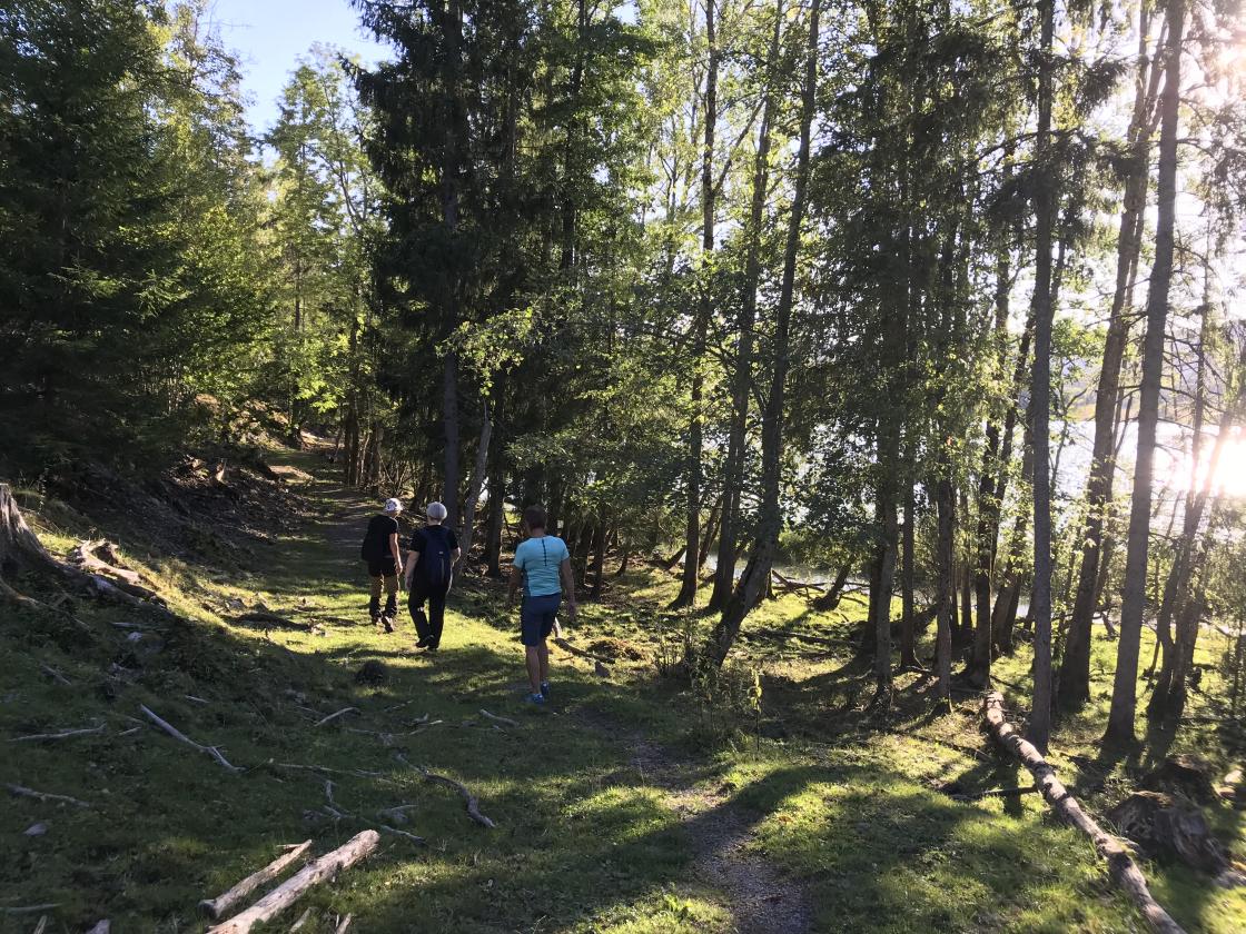 Tre syklister og én gående møttes denne augustkvelden 23. august. Vi satte fra oss syklene og gruppa på fire gikk stien i fint terreng - nær 8 km - rundt Vikevannet. Sportslig, sosialt og heldige oss som valgte å være sammen på tur. Avsluttet på stranda i solnedgangen med eplekake og kaffe - bedre kan det ikke bli. Leder Birgith utstyrte oss med T-skjorte og vannflaske som også resten i Vassås Bygdekvinnelag får etter hvert. Neste gåtur er tirsdag 6. september.