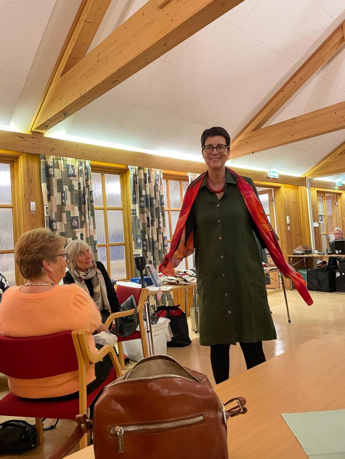 Det var Vassås og Hof bygdekvinnelag i samarbeid med Husfliden i Holmestrand som var arrangør av den flotte motevisningen med klær og antrekk fra Husfliden ledet av Nora Marie, daglig leder godt hjulpet av stylist Helle og Ole som ordnet med innslag av musikk til visningen. I tillegg til motevisningen var det salg av kaker, drikke og loddsalg. Gevinster var gitt av lokale næringsdrivende, medlemmer av bygdekvinnelaget og ikke minst flott lappeteppet strikket og montert av medlemmene,