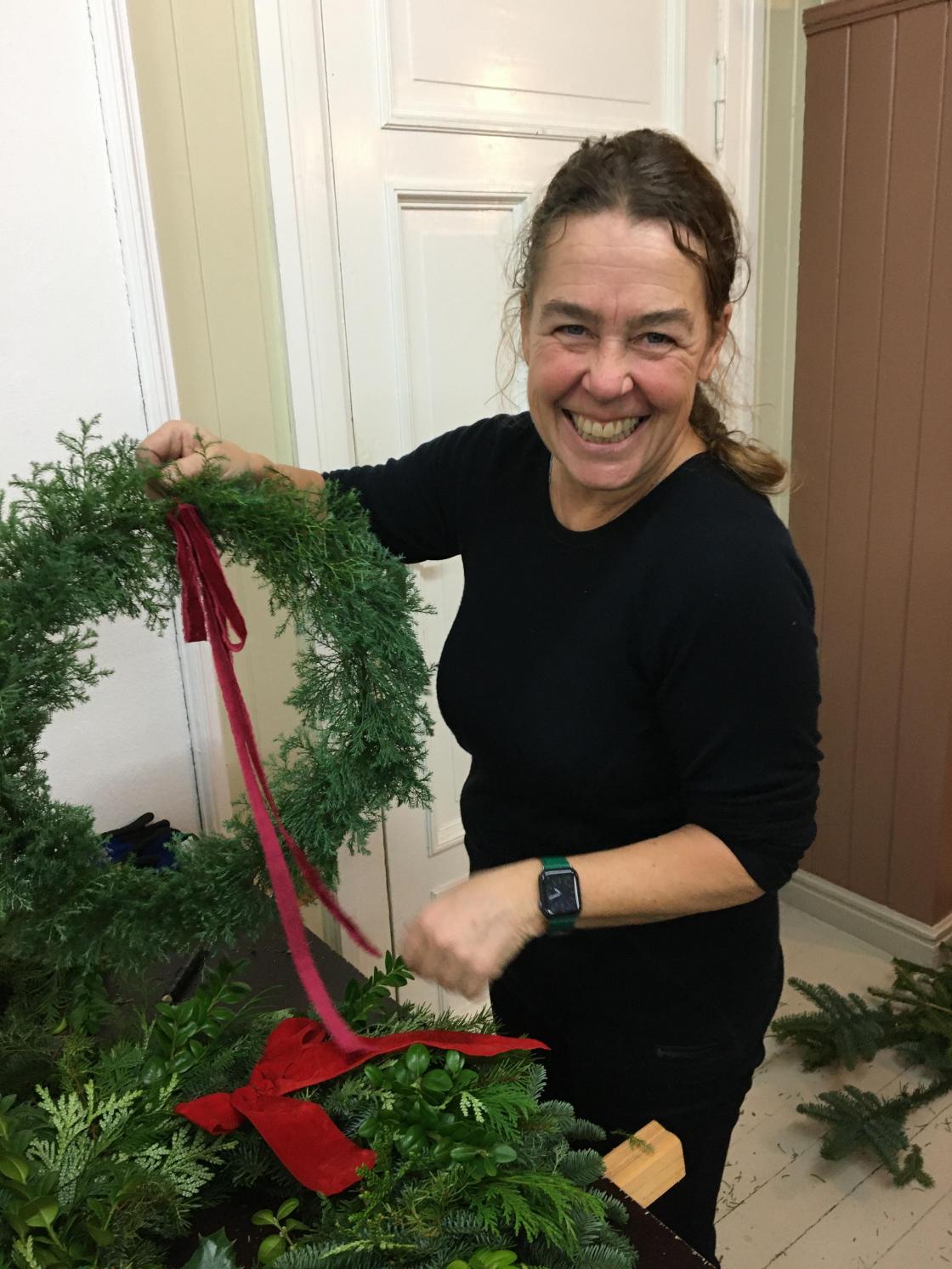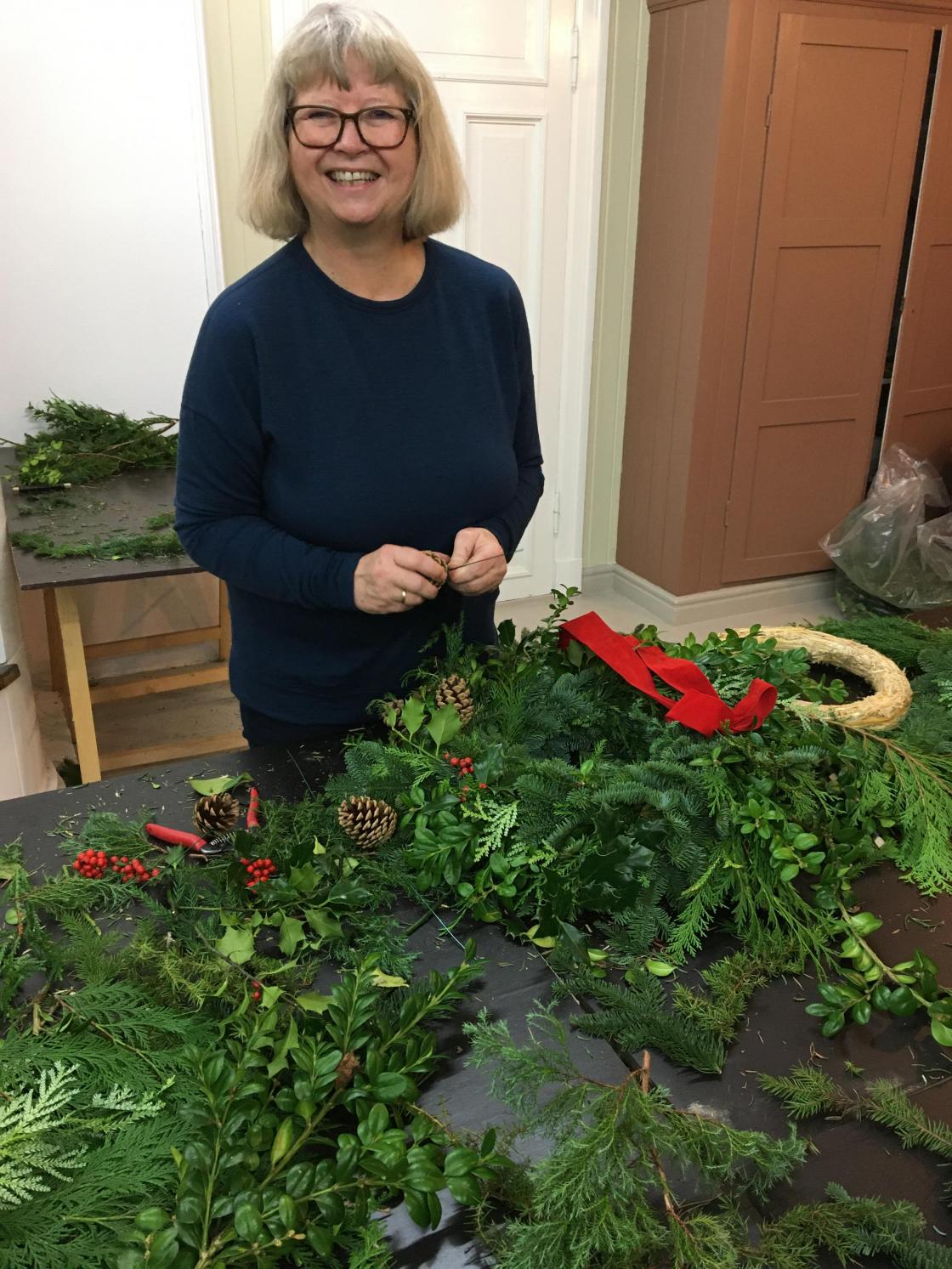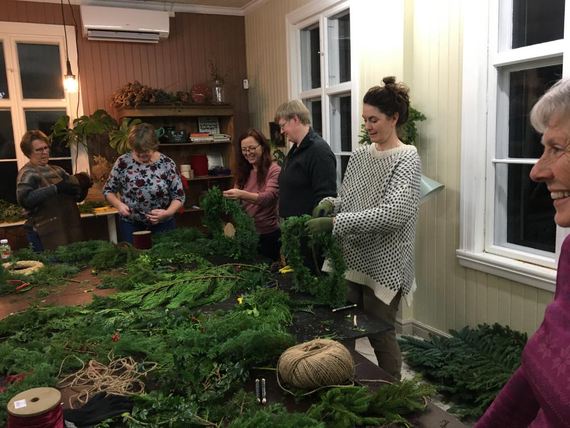 Lærte å binde julekranser