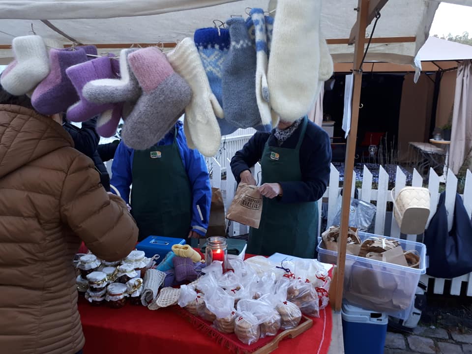 Holt Bygdekvinnelag fikk mye skryt av den fine standen under julemarkedet 2018 med kaker, lefser, syltetøy, votter og sokker.